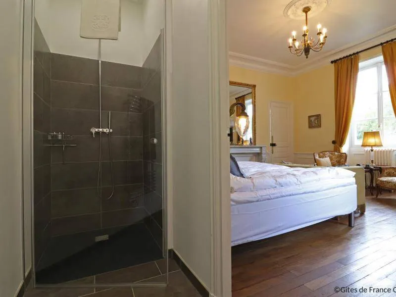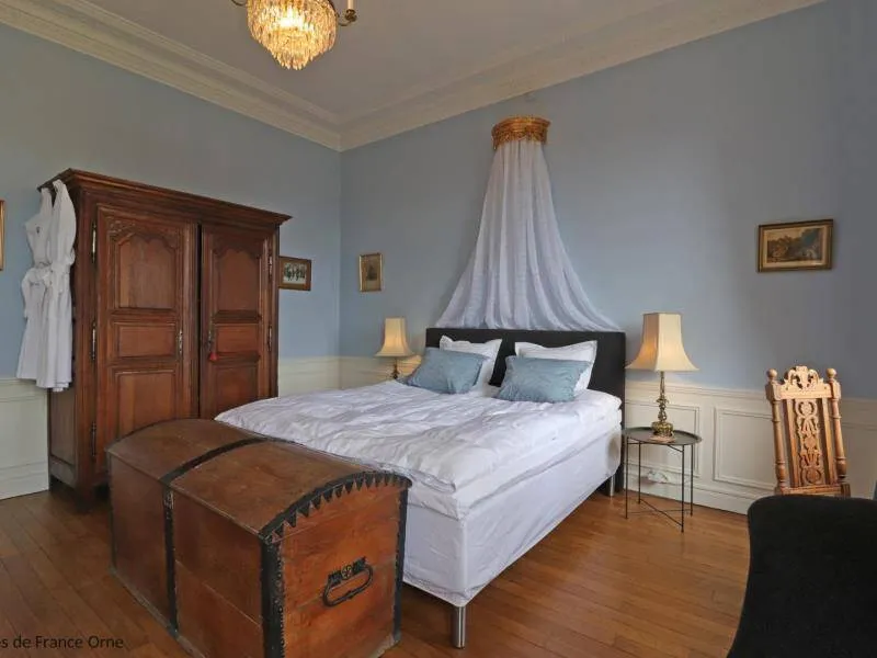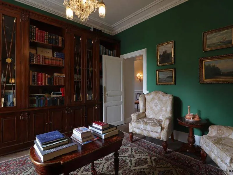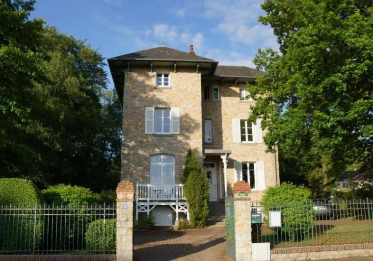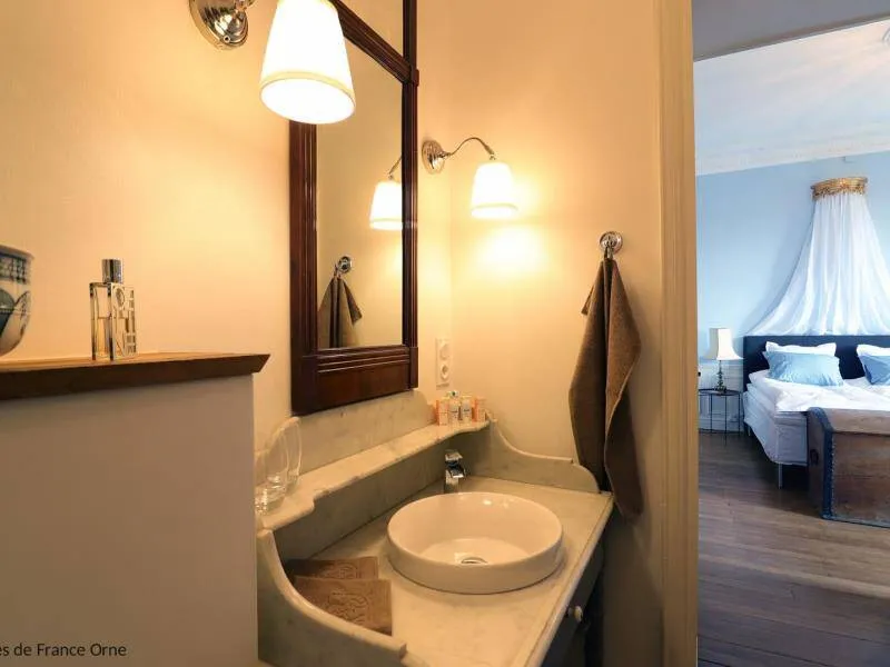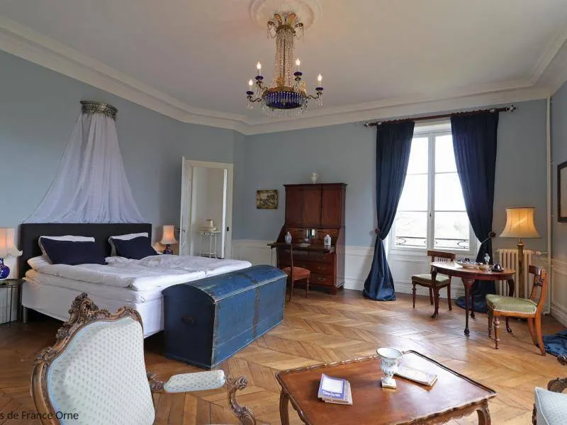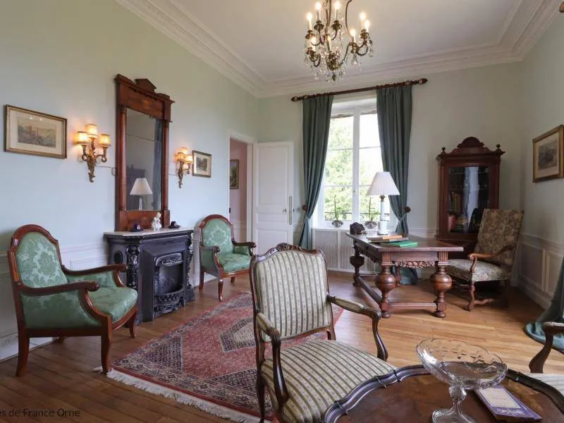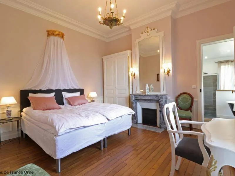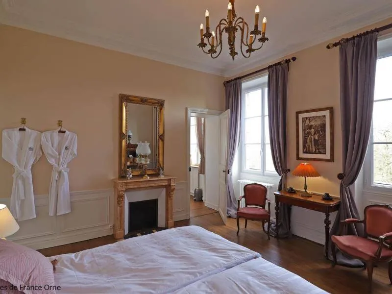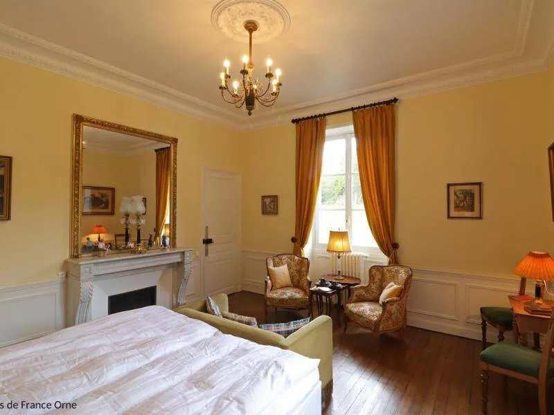 Large residence reminiscent of the splendor of the Belle Epoque when Bagnoles de l'Orne welcomed the crowned heads of Europe. Located on a hill just outside Bagnoles de l`Orne with 13 hectares of natural park and the Andaines forest all around, the "Château du Gué aux Biches" is a secluded place where relaxation is essential, facing the sea. golf, while being close to the many activities, events, restaurants, casino and spas of the spa. Soren and Klaus have endowed this large family house with all modern comforts while retaining this very special character: period furniture also tells their story, their travels and invites you to dream in the footsteps of Marie Laurencin, Paul Féval, Sophie Herminde, Alexandre Dumas and Albert Christolphe ...Garden level: hunting room with the possibility of having your meals, living room, toilets. 1st level: breakfast room, lounges, library, terrace. Guest rooms on the upper floor of the castle: 1 suite with living room, balcony and bedroom (2 single beds 90 cm x 200 cm which can be twinned as a double bed) and private bathroom (shower and bath) with wc, 3 bedrooms (with each 2 single beds 90 cm x 200 cm which can be twinned as a double bed) and private bathrooms with wc. 1 large bedroom with balcony (2 single beds 90 cm x 200 cm can be twinned as a double bed) and bathroom with wc. Central heating. Park with unenclosed water feature. Bicycles available to guests.