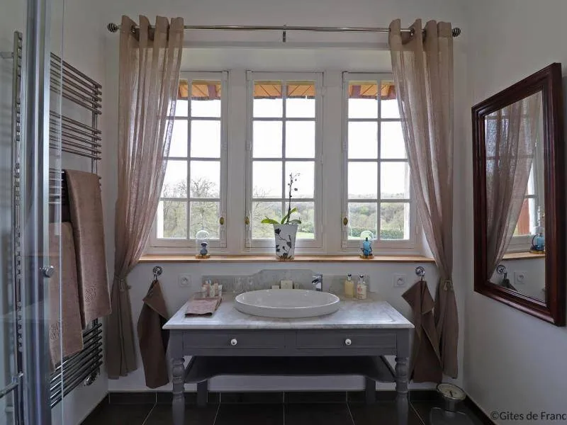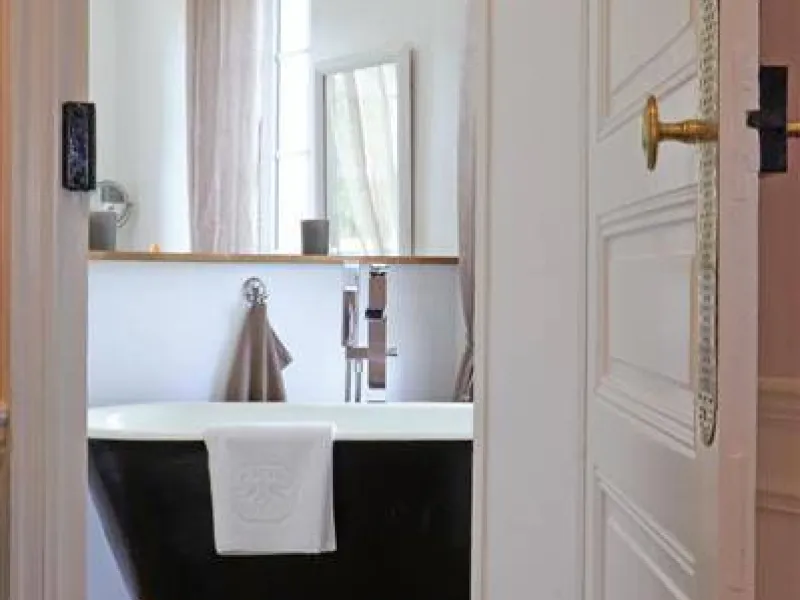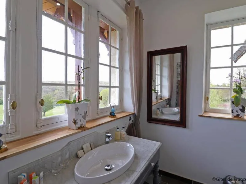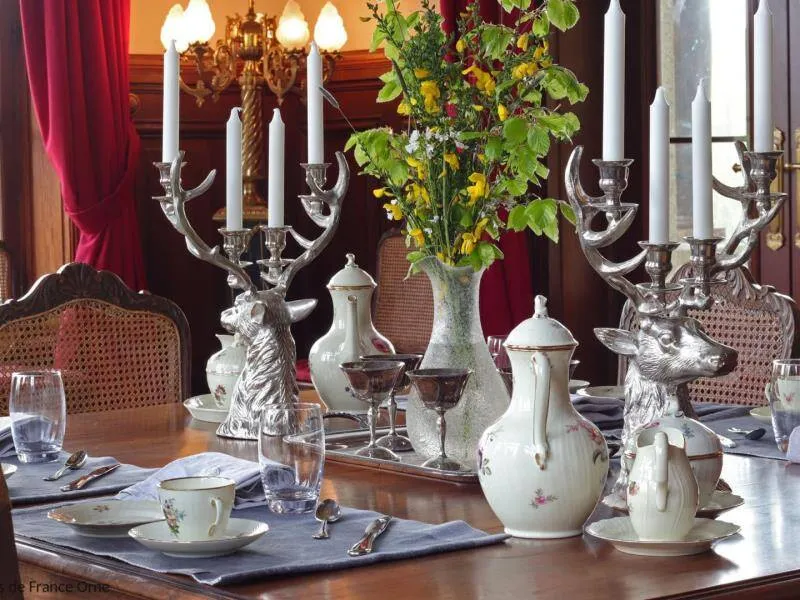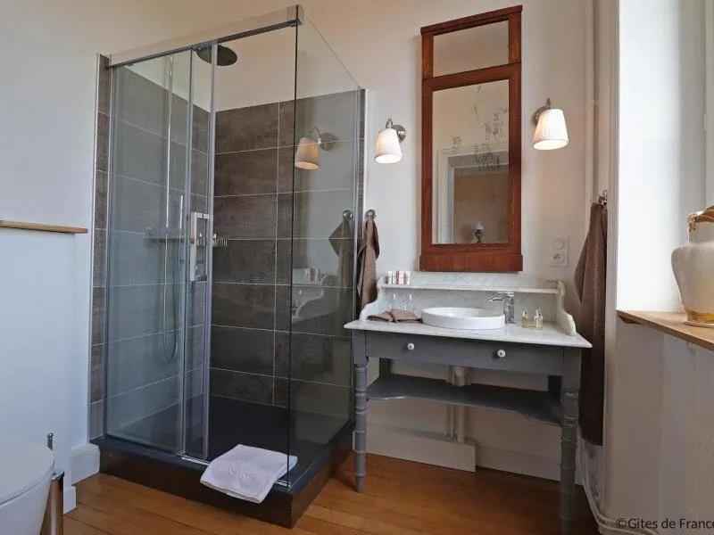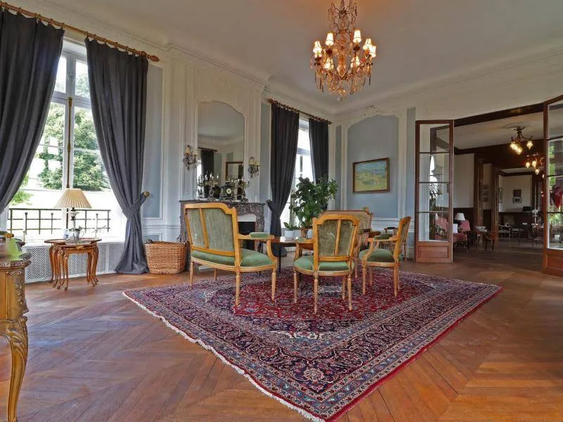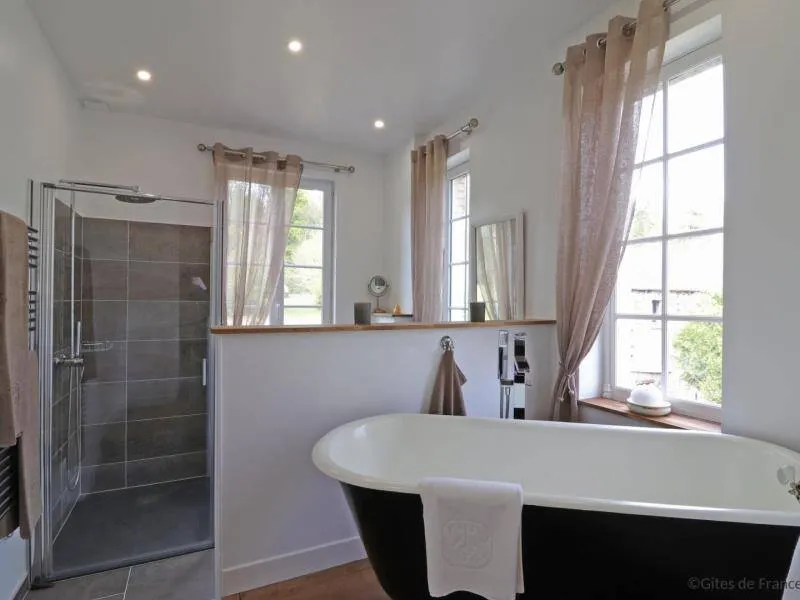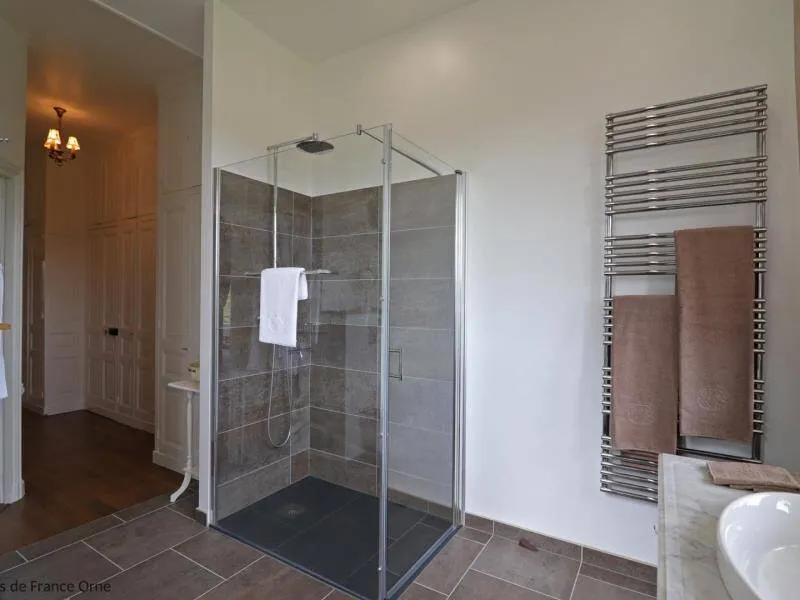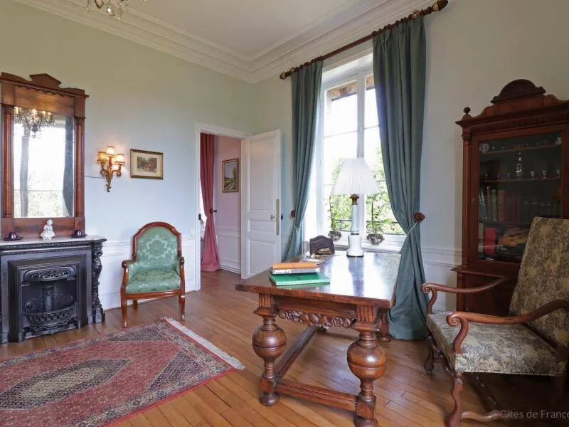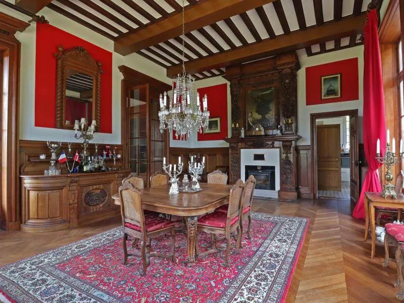Large residence reminiscent of the splendor of the Belle Epoque when Bagnoles de l'Orne welcomed the crowned heads of Europe. Located on a hill just outside Bagnoles de l`Orne with 13 hectares of natural park and the Andaines forest all around, the "Château du Gué aux Biches" is a secluded place where relaxation is essential, facing the sea. golf, while being close to the many activities, events, restaurants, casino and spas of the spa. Soren and Klaus have endowed this large family house with all modern comforts while retaining this very special character: period furniture also tells their story, their travels and invites you to dream in the footsteps of Marie Laurencin, Paul Féval, Sophie Herminde, Alexandre Dumas and Albert Christolphe ...Garden level: hunting room with the possibility of having your meals, living room, toilets. 1st level: breakfast room, lounges, library, terrace. Guest rooms on the upper floor of the castle: 1 suite with living room, balcony and bedroom (2 single beds 90 cm x 200 cm which can be twinned as a double bed) and private bathroom (shower and bath) with wc, 3 bedrooms (with each 2 single beds 90 cm x 200 cm which can be twinned as a double bed) and private bathrooms with wc. 1 large bedroom with balcony (2 single beds 90 cm x 200 cm can be twinned as a double bed) and bathroom with wc. Central heating. Park with unenclosed water feature. Bicycles available to guests.