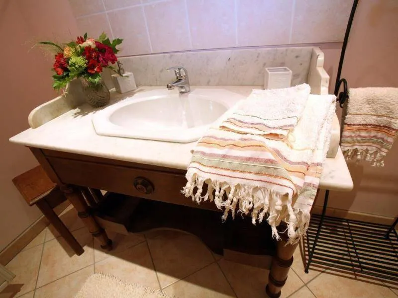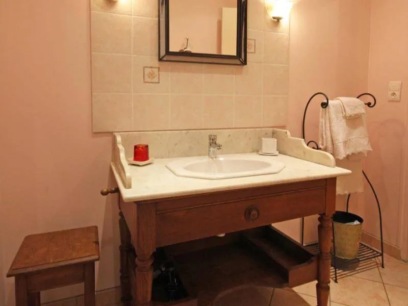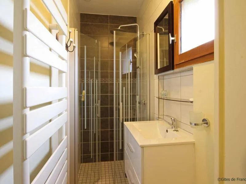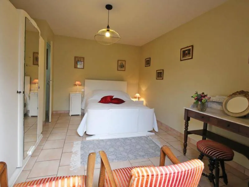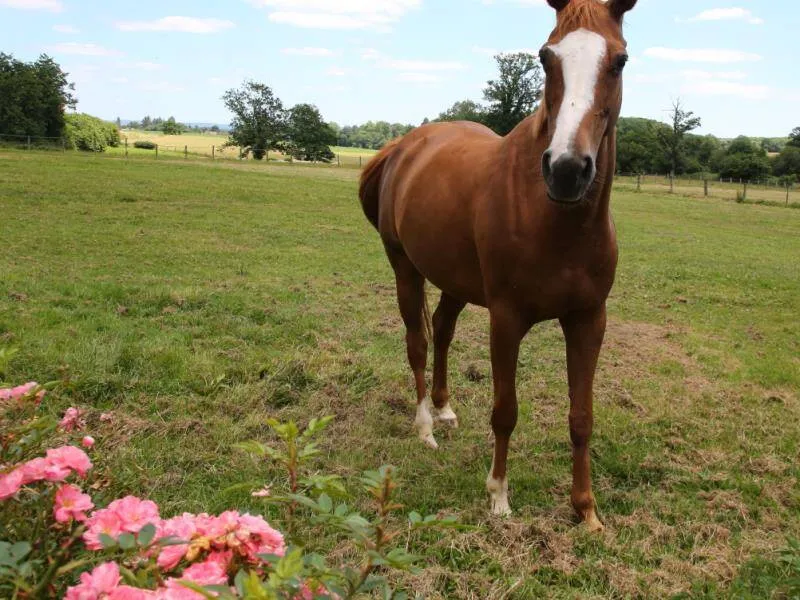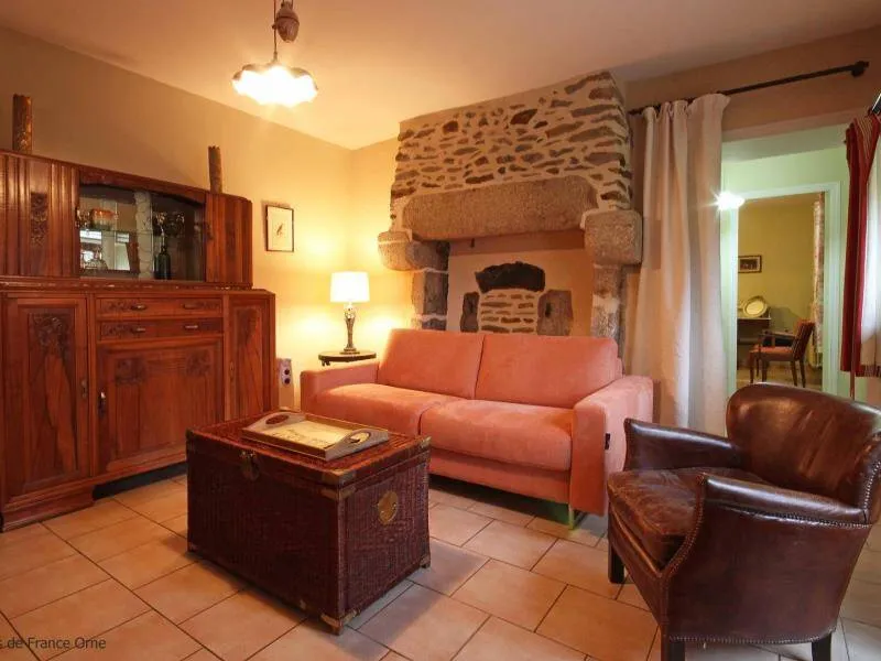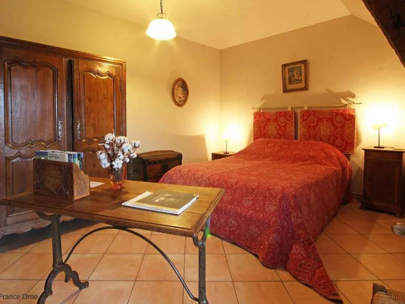 Ground-floor outbuilding w/lounge (TV) & kitchenette reserved for guests: Bedroom 1 (double bed, dble sofa-bed), private shower-rm & lavatory (washing machine). On upper floor of owner's house: bedroom 2 (double bed), private shower-rm & lavatory, microwave on landing. Central heating. Garden with fA bedroom with all the advantages of a tiny house! Françoise TRILLON, amateur horse rider & breeder will portray her love of sport horses. Just a few miles away, sightseeing in Alençon or the 'Mancelles' Alps.