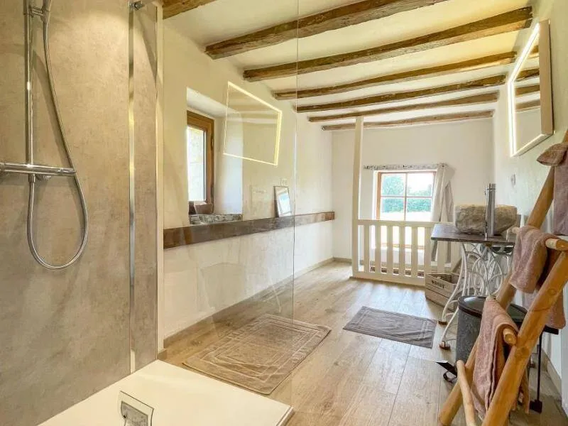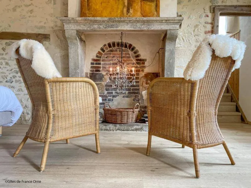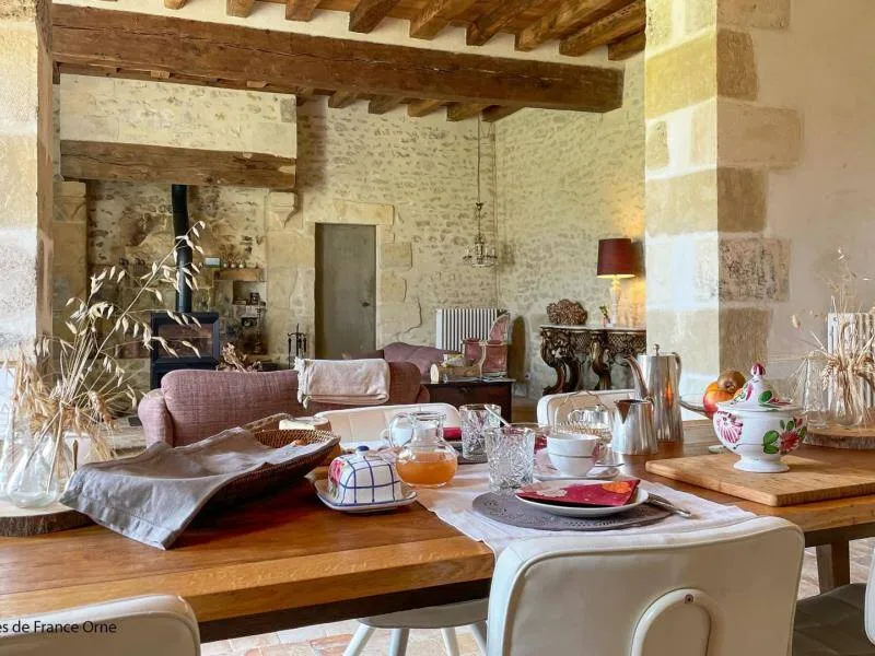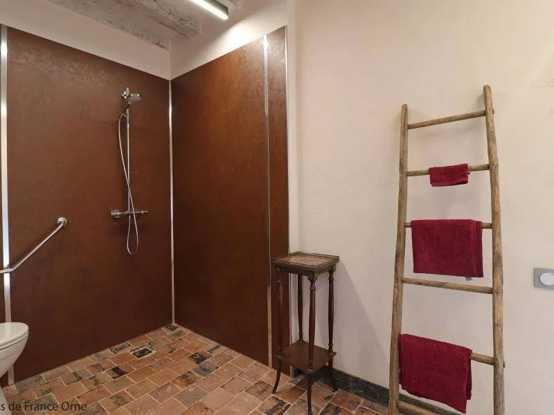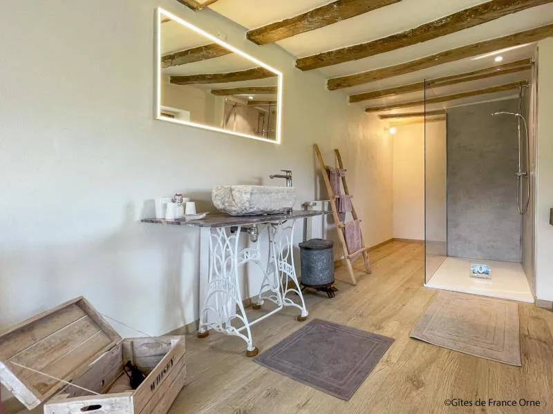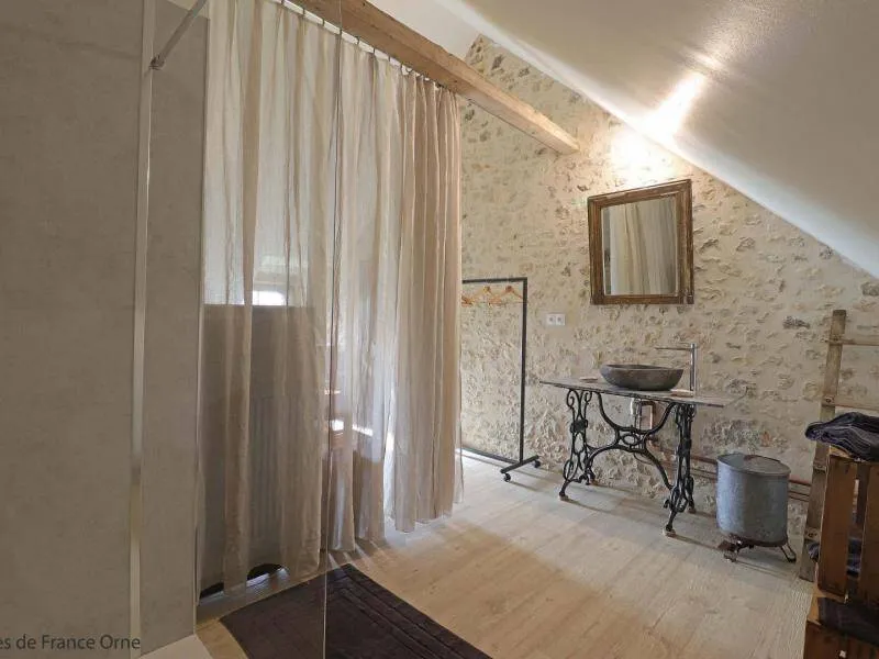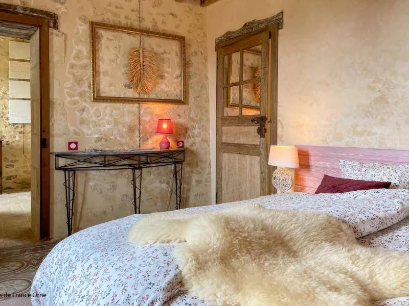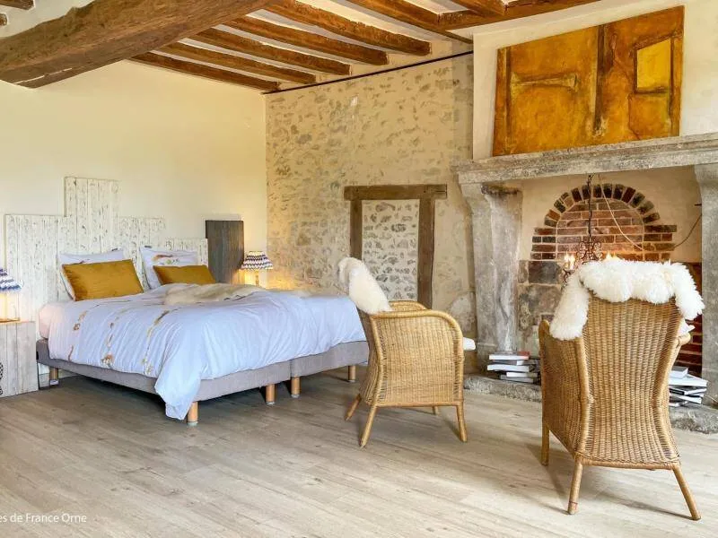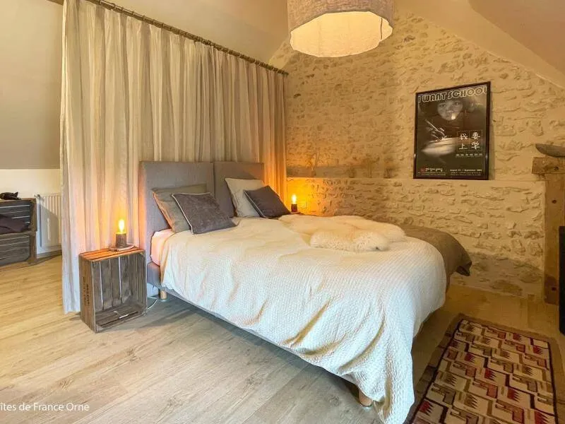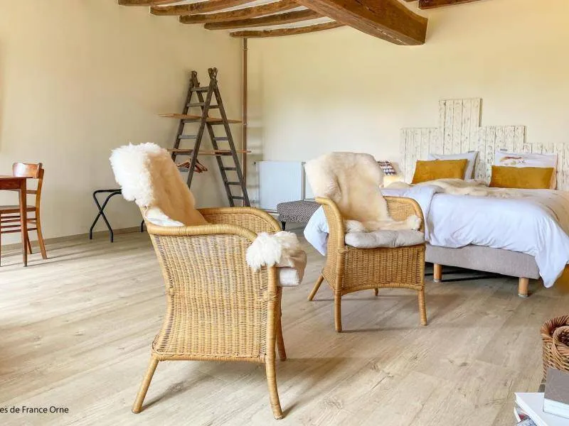 Authentic Percheron farmhouse restored according to the rules of the art by local master craftsmen. The breakfast room and the living room offer impressive volumes. The cozier rooms all have a neat and personalized decoration. La Bidannerie is discovered at the end of a small country lane in a natural setting on 10,000 m² of property, surrounded by fields and not overlooked."Préaux Plage" bedroom on the ground floor with independent entrance: double bed separable into 2 80 x 200 cm beds, shower room with wc in duplex. Room "Port Sainte Gauburge" on one level suitable for disabled people: double bed separable into 2 beds 80 x 200 cm, shower room with wc. "Nocé les Bains" bedroom upstairs: double bed separable into 2 80 x 200 cm beds, shower room with open toilets separated by a curtain. Breakfast room and lounge with stove. 2 dedicated sockets for charging electric vehicles. Possibility of garage for bicycles. Small dogs accepted on request.