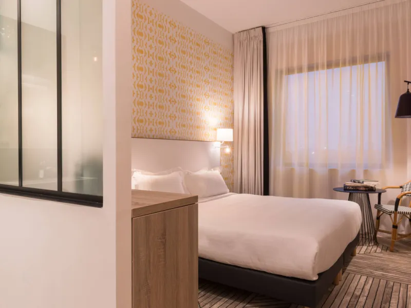 The style of the hotel inspired by urban art, signed by the Moah agency and the artist Loup Pelissier. Our House is a team of 32 hoteliers who will take it to heart to make sure you have a friendly, original and connected stay. 185 rooms with a design that subtly blends the contemporary and the artist's studio, a combination of the avant-garde and the vintage in the image of Greater Paris. Our rooms have a surface area of 14m2 with a beautiful bathroom separated by a glass roof. 55 inch TV with more than 80 channels, ultra-fast wifi. Tea, coffee, and bottles of water are at your attention. The premium room, with a surface area of 16 to 20m2, also includes a bathroom with bathtub, a queen size bed or twin beds, a work space and a Nespresso coffee machine. - Our premium connecting rooms can accommodate up to 4 people to accommodate the whole family. The suite offers a space of 35 to 45 m2 with a separate bedroom, a queen size bed or twin beds, a work space and a Nespresso coffee machine.