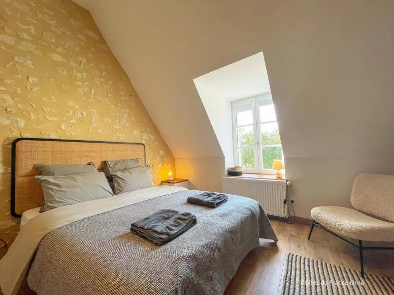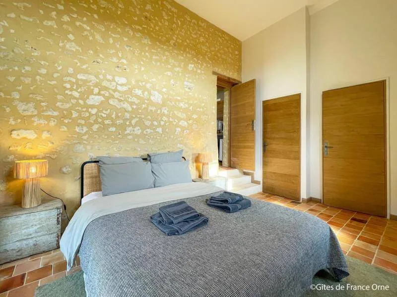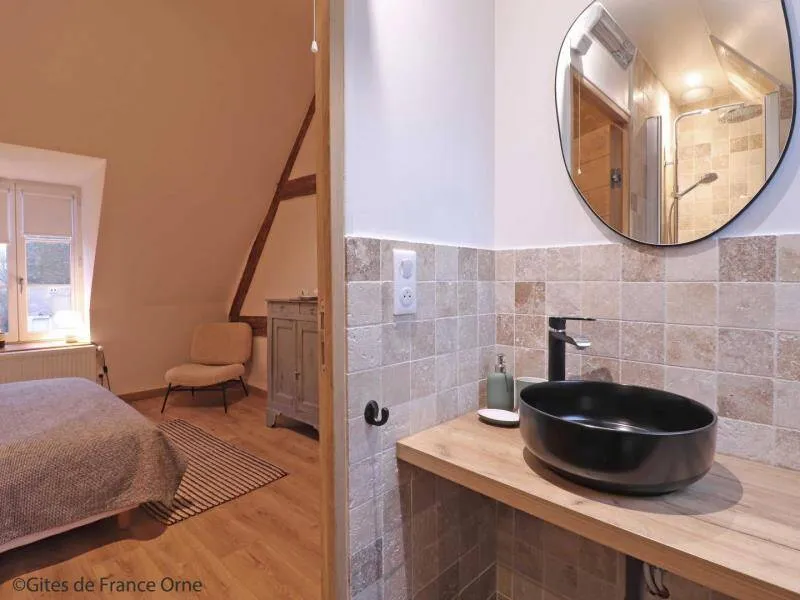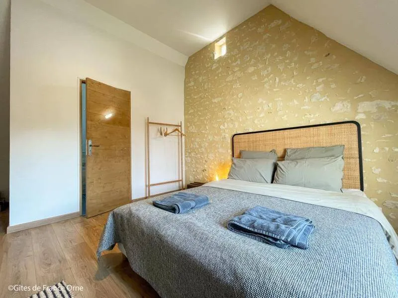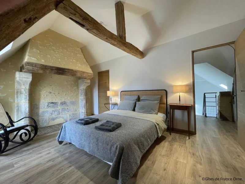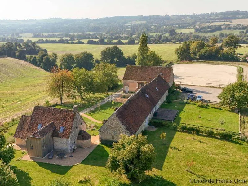 Le Bistrot des Écuries is a 2.5 hectare property with a breathtaking view of the Perche hills, at the end of a small road, with a bistronomic restaurant and equestrian facilities on site (show jumping arena, 6 boxes and 2 paddocks). The cottage has been restored according to the rules of the art with antique furniture and excellent comfort. Your hosts offer meals on site from Thursday to Sunday. Don't miss discovering the "Small Cities of Character" of Mortagne au Perche and Bellême. Golf 20 km. Hiking trails departing from the cottage.Independent 17th century house in all-inclusive formula. - Ground floor : entrance, dining room with kitchen and living room (bread oven), bedroom (3 steps) with double bed 160 x 200 cm, bathroom (hand basin and toilet), laundry room. - Floor : bedroom with double bed 160 x 200 cm, courtesy tray, bathroom with toilet, bedroom with double bed 160 x 200 cm, courtesy tray, bathroom with toilet, Possibility of additional bedroom with double bed 160 x 200 cm and bathroom in outbuilding with supplement. Unfenced terrace and garden. Ping-pong table, bowling, balls and children's games. Large parking lot.